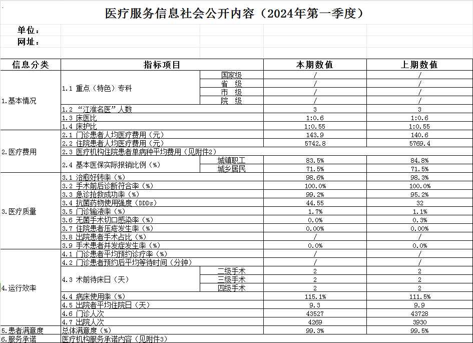 2024年第一季度淮北市二级以上医院医疗服务信息公开